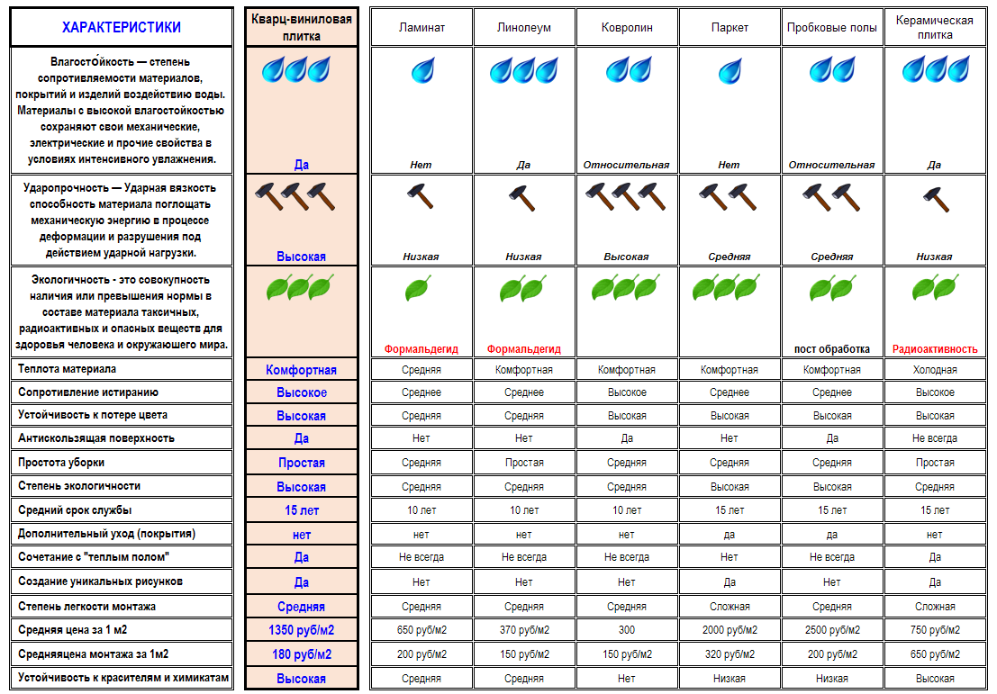 СРАВНИТЕЛЬНАЯ ТАБЛИЦА ХАРАКТЕРИСТИК НАПОЛЬНЫХ ПОКРЫТИЙ ДЛЯ ПОЛНОЦЕННОГО ПРОСМОТРА, ТАБЛИЦУ СЛЕДУЕТ СКАЧАТЬ (при нажатии на таблицу, она будет скачана автоматически)
